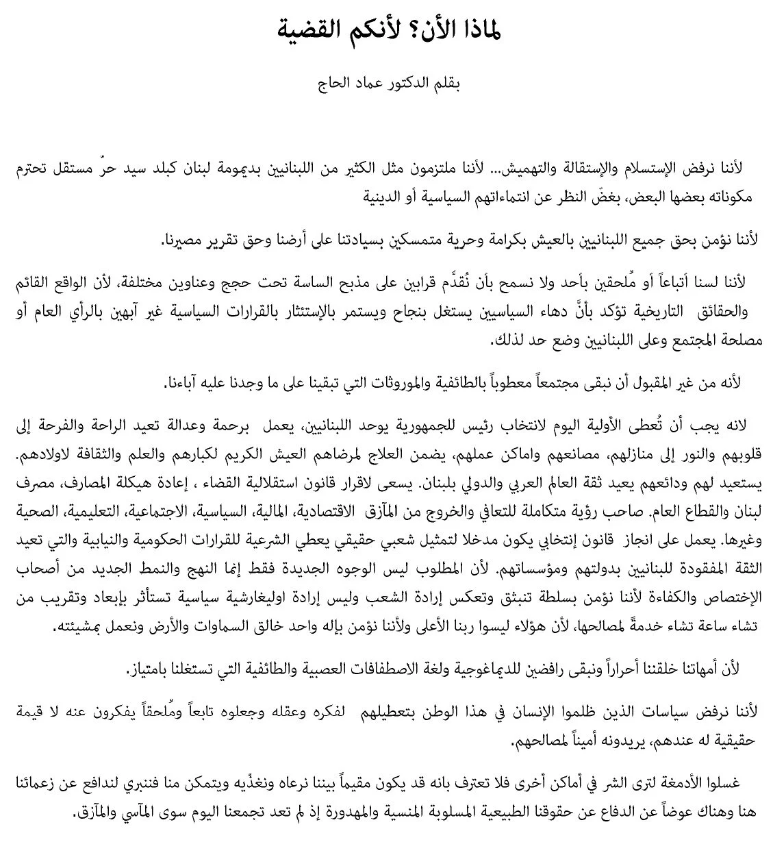 Home لماذا الآن؟ | Why Now? أنشطة | Image Gallery مقابلات | Interviews الإعلام ووسائل التواصل الاجتماعي | In The News يهمّنا رأيك | Contact Us